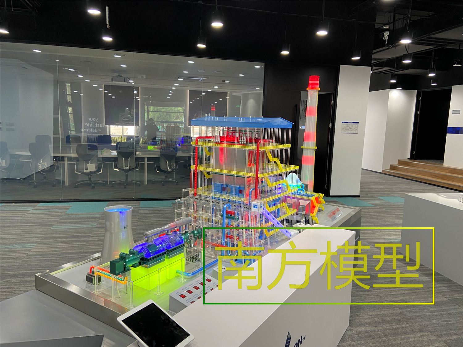 火力发电厂整体布局是跟根据我我国先进的火力发电厂为原型,设计制作的或了发电厂布局模型,充分提现了火力发电厂的生产流程,及火力发电厂的原理,用声光电的手法模拟发电,让参观学习者很好的了解火力发电的生产原理及过程。