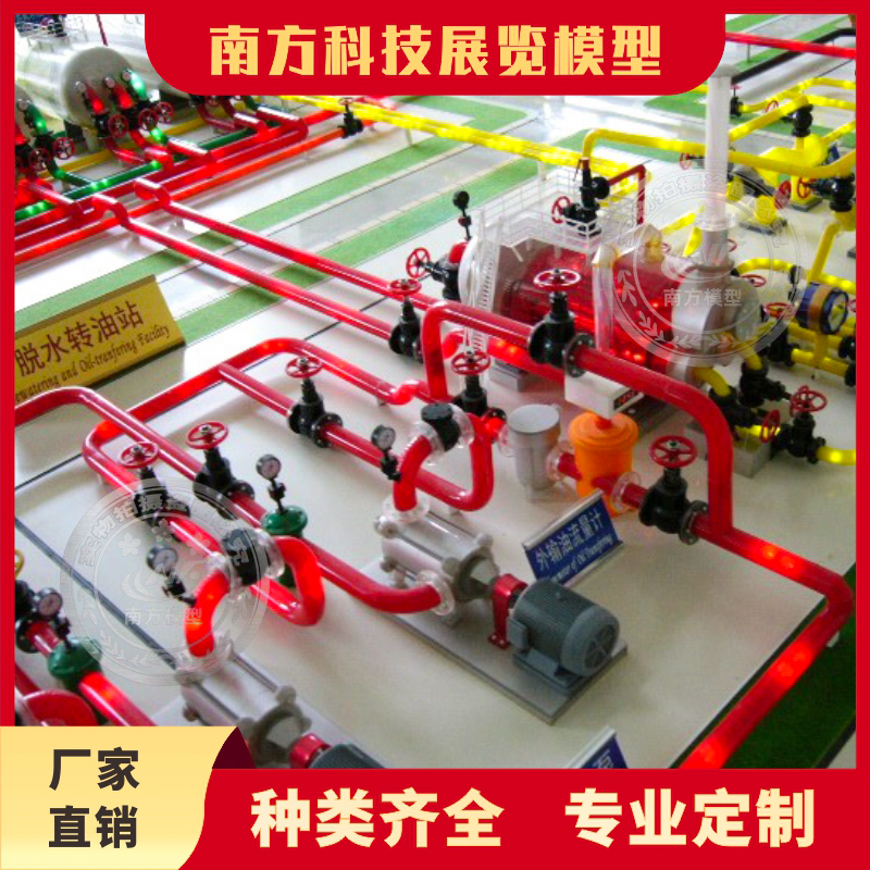 7.模型建筑的灯光全采用独立光源制作而成,灯光分布错落有致,展现出极佳的视觉效果。管道灯光则采用不同色彩的LED贴片流水灯,以工业设备间的生产流程为展示对象,通过不同颜色的灯光以流水灯的形式展示生产流程,给人更直观的效果。